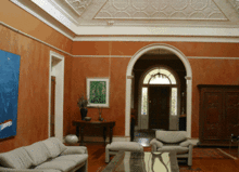 Daniel Rowntree Somerset, Registrar of Pensions, leased Portions 164, 165 & 381, which included St John's Wood (known now as Granite House from the materials used in its construction) to George Rogers Harding in May 1868. Harding proceeded to purchase the property by 27 January 1874.[14] He developed the 75 acres (30 ha) stretching back to Taylor Range, across to Bailey's quarry and Trouton's old residence at Ashgrove to Sir Charles Lilley's quarry and the Glenlyon Estate.[15] He extended the house, adding a ballroom by infilling the space between the two wings,[16] constructed a separate adjacent building consisting mostly of bedrooms, stables were added, quarters for men and maids and a fruit grove established.[note 1] The original property comprised a drawing room, dining room, large hall, smaller hall, library, "best" bedroom, dressing room, bachelor's room, seven other bedrooms, pantry, lumber room, two servants' rooms, kitchen, laundry and stables.[17] Some of these rooms would have been in an adjacent building known as the "Cedar House". It was moved in 1926 to an adjacent site and shortly afterwards accidentally burnt down.[18]