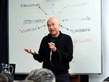 After his resignation to the Havana Biennial, Mosquera was banned to publish, curate and lecture in his country until today, and since then he has been working as a freelance internationally. In 1990 he was a Guggenheim Fellow. From 1995 to 2009 he was adjunct Curator at the New Museum of Contemporary Art, New York, although his work was seriously hampered by legal constraints due to the United States embargo against Cuba, where he continued to live. Together with Dan Cameron he set off a program at the Museum that introduced a broader international approach in the New York art scene. His radical notion of “the museum-as-hub”[13] transformed the New Museum’s Education Department to include what is called the Museum as Hub, “a new model for curatorial practice and institutional collaboration established to enhance our understanding of contemporary art. Both a network of relationships and an actual physical site…”[14] with an international program of its own. Mosquera's theoretical work pioneered critical discussions about the complex cultural processes of modern and contemporary art from non-mainstream countries, especially in relation to mainstream art, globalization and postcolonial dynamics.[15] He has also contributed to promote an open, multifaceted view on Latin American art, moving away from the identity stereotypes that prevailed in the 1980s[16] – his standings being sometimes polemical.[17] The exhibition Ante America, which he co-curated in 1992 (see below), was a landmark for this new view on Latin American art. Mosquera’s ideas, position and curatorial and editorial practice have been significant in the new scenario of broad international circulation of art.[18][19] The curator's work has lately focused on projects out of the white cube, trying to achieve artistic communication with broader audiences, beyond the art world’s elite.[20] Some examples are his contribution to the Liverpool Biennial, and shows that have tried to create an active dialogue with the public space and to involve people in the streets, as CiudadMultipleCity. Arte>Panamá 2003 (), The Sky Within My House, Contemporary Art in Patios of Quito (), and ¡Afuera! (see all below).