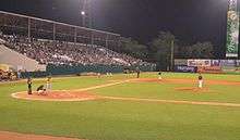 In 1999, due to a disastrous season in which the team broke the record for fewest games won, 9–51, controlling shareholders decided to relist the team and that is how it was handed to Julio Hazim, who immediately renamed the team as Pollos del Cibao, staying for two years as head of the administration team. It was in the first season of the new ownership when Hazim fixed part of the stands, stadium roof and drainage. That same year there was a new sale, this time to former big leaguer Stanley Javier, who decided to return to the previous name, but now it was no longer the Gigantes of nordeste (Giants of Northeast) but: Gigantes del Cibao.[2] From 2004–2012, the team was under the direction of the Genao family.[3] Since 2013, the team went on to be managed by the Rizek Family.[4][5]
