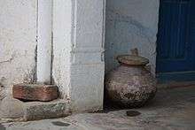 There were 4 community kuis of Poonia, Sunda, Thakur, and Tetarwal.The well was operated though bid system. Livestock heads were counted and per head bidding rates invited. Water was drawn with the help of bullocks. The well was operated daily in the morning and evening. The echo of the sweet songs by the "kuadias" कुआडिया( two men operating the well)at 4 AM were used to be very refreshing and enlightening. In the evening, operating time of the well was very lively and entertaining. Both of the elders and the youth would gather in the "Guaad" गुआड़(courtyard in the common land); overtly gossiping and discussing village news. But their main attraction would be the "Paniharins" पनिहारीं (the newly wed brides in a flock along with their young sisters-in-law going to fetch water from the well). They used to dress themselves in the best of their decorated traditional attires and ornaments. The elders stealthily glancing and the youths openly and closely; but the moments would be exotic to both.