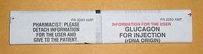 - 1 2 "Glucagon for Injection, rDNA formulation" (PDF). Lilly. Retrieved 23 February 2014.