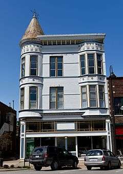 The Gobble and Heer-Spurgeons Building is a historic building located in Fairfield, Iowa, United States. It is a three-story, brick, Queen Anne commercial building that was built by Ed Hunt and E.A. Howard on the north side of the town square in 1892. They did not occupy the building themselves, but rented to Harry Booker for his clothing store and the Bevering Cigar Store.[2] Lee T. Gobble and Charles H. Heer bought the clothing store from the Booker estate in 1899. Both the clothing store and the cigar store remained in the building until the 1930s when the entire first floor was taken over by Spurgeons. The upper floors were a mix of offices, apartments, and a lodge hall for the Knights of Pythias and the Pythian Sisters on the third floor. The building was listed on the National Register of Historic Places in 2015.[1]