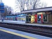 Godalming railway station is a stop on the Portsmouth Direct Line. The station, opened in 1859 to replace one on a different site, is situated at the edge of the town of Godalming, England.