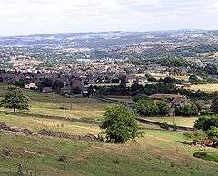 Golcar (pronounced 'Goker' or 'Golker': the 'L' is silent in local pronunciation) is a village located on a hillside crest above the Colne Valley in West Yorkshire, England, 2.5 miles (4 km) west of Huddersfield, and just north of the River Colne and the Huddersfield Narrow Canal. By the time of the 2011 Census the population had increased to 18,033.[2] The main access route is from the A62 (Manchester Road), through Milnsbridge in the bottom of the valley or via Scapegoat Hill from the A640 (New Hey Road) at the top of the hill.