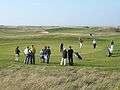 the 18th at Granville seen from the cluhouse at sunrise when the shadows play on the humps and hollows- the 6th tee at Granville from where you can see Jersey and much of the Brittany coastline