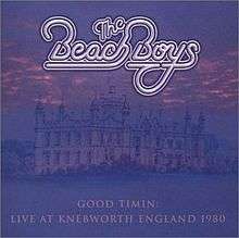 Good Timin': Live at Knebworth, England 1980 is a CD and DVD release of a concert performance by the Beach Boys at Knebworth, Hertfordshire in June 1980. Because of Brian Wilson's limited tour schedule with the Beach Boys, Knebworth is the only live album to feature all six Beach Boys—Brian Wilson, Dennis Wilson, Carl Wilson, Mike Love, Al Jardine and Bruce Johnston. The concert was also their last major UK performance together.