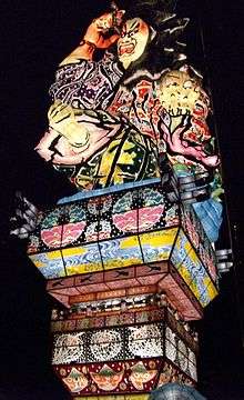 The Goshogawara Tachineputa Festival (五所川原立佞武多祭り Goshogawara Tachineputa Matsuri) is a Japanese summer festival which takes place every August in Goshogawara, Aomori Prefecture, Japan. It is known as one of the four largest festivals in the Tsugaru region of Japan, along with the Aomori Nebuta Festival, the Hirosaki Neputa Festival, and the Kuroishi Yosare Festival. The Goshogawara Tachineputa Festival is notable for its large tachineputa floats, which are much taller than those found in the Aomori and Hirosaki Festivals. The tachineputa floats stand at 23 meters in height and weigh 19 tons. The start of the festival is marked with a fireworks show on August 3, with the parade beginning on August 4 and continuing through August 8th.[1]