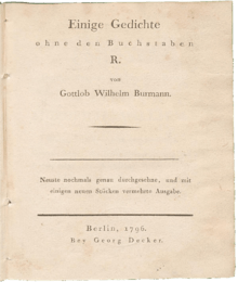 Gedichte ohne den Buchstaben R., Berlin, 1796.