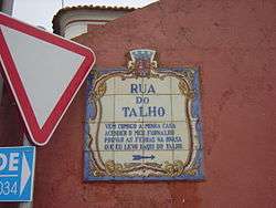 A typical street sign in Gouveia carrying a stanza (in this case, the "Butcher's street").