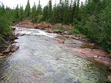 Grønfjellåga (lit. "the river of the green mountain") is a river in the municipality of Rana in Nordland county, Norway. The 17-kilometre (11 mi) long river's source is the lakes Kallvatnet and Kopparvatnet. It then flows through the Grønfjelldalen valley while absorbing several smaller rivers, before it flows out as a tributary to the river Ranelva at the Dunderforsen waterfall (also called Stupforsen).[1]
