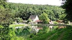 Kartause Grünau with fish pond and main building (now a restaurant) | |