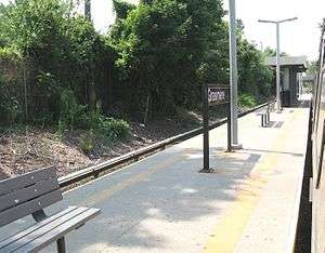 This station has the original brick station house from the 1933 grade separation project over the Tottenville-bound track at the south end of the line. The building is open only during the morning rush hour. The platform is located in an open cut and has glass block and concrete windscreens attached to the canopy supports; the only exit is at the north end of the station. The Grasmere crossover, consisting of two manual switches, was located just past the Fingerboard Road overpass north of the station, but has since been removed. North of this station, the line merges with the abandoned South Beach branch. The South Beach was closed on March 31, 1953 due to poor ridership and better bus service in Staten Island.[5][6][7]