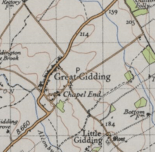 Great Gidding is a village and civil parish in Cambridgeshire, England.[1] Great Gidding lies approximately 10 miles (16 km) north-west of Huntingdon. Great Gidding is situated within Huntingdonshire which is a non-metropolitan district of Cambridgeshire as well as being a historic county of England. The village has a Church of England primary school, playing field, corner shop, village hall and several local businesses. There is one public house in the village, The Fox and Hounds. Surrounding towns and cities are Huntingdon, Oundle and Peterborough. It is a small village in the East of England, very rural and close to the A1 road.