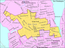 Great Neck is a village in the town of North Hempstead in Nassau County, New York, in the U.S., on the North Shore of Long Island. It sits on the New York City-Nassau County border. As of the 2010 United States Census, the village population was 9,989.[1]