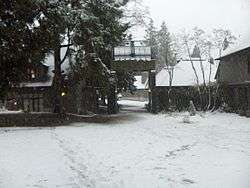 In 1935, the Grand Campus Washout eroded a deep ravine across the east end of the grounds. After several days of erosion, the Gardener's shed collapsed into the ravine. Afterwards, the gully was filled with debris from a nearby landslide.[2] The shed was not rebuilt. The landslide area can be identified today by the younger trees on the fill area and a sudden decrease in elevation where the fill has compacted.