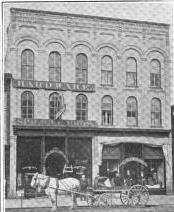 In 1870-71, Myron Rider and Thomas J. Potter constructed this brick building. It has a unique set of oculus windows above the third story, giving the structure a commanding appearance. At 50 feet high, it is still the tallest building located along Lafayette.[4]