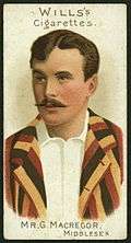 Gregor MacGregor (31 August 1869, Merchiston, Edinburgh – 20 August 1919, Marylebone, London) was a Scottish cricketer and rugby union player. He played rugby for Scotland and cricket for England.[1]
