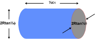 First find the magnitude of the clutter return. Assume that the clutter fills the cell containing the target, that scatterers are statistically independent and that the scatterers are uniformly distributed through the volume. The clutter volume illuminated by a pulse can be calculated from the beam widths and the pulse duration, Figure 1. If c is the speed of light and is the time duration of the transmitted pulse then the pulse returning from a target is equivalent to a physical extent of c, as is the return from any individual element of the clutter. The azimuth and elevation beamwidths, at a range , are and respectively if the illuminated cell is assumed to have an elliptical cross section.