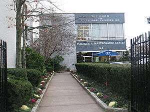 The Guild for Exceptional Children was founded in 1963, at a time when many public schools did not provide classes for some children with a disability. The founding president of the Guild for Exceptional Children was Olga DeFelippo (died November 3, 2005).[1] In 2001, the City of New York renamed part of 68th Street in Brooklyn, between Ridge Boulevard and 3rd Avenue, as "Guild For Exceptional Children Way."[2]