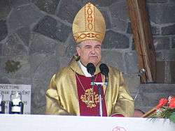 György Miklós Jakubinyi (born 13 February 1946) is a Romanian cleric, archbishop of the Roman Catholic Archdiocese of Alba Iulia. Born into an ethnic Hungarian family in Sighetu Marmației, he attended school in his native town from 1952 to 1963 before beginning his religious training that year at the Roman Catholic Theological Institute of Alba Iulia. Ordained a priest in 1969 by Áron Márton, he was consecrated auxiliary bishop at Șumuleu Ciuc in 1990. The following year, he became administrator of the Ordinariate for Catholics of Armenian Rite in Romania. He was made archbishop in 1994.[1]
