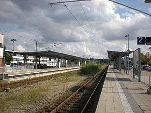 Höhenkirchen-Siegertsbrunn is a station on the Munich S-Bahn network on the Munich-Giesing–Kreuzstraße railway. It is located in the community of Höhenkirchen-Siegertsbrunn, south-east of Munich. It has two side-platforms with a large distance between the tracks. It is served by line S7 in a twenty-minute rhythm. A third of the outbound trains terminate here, the rest continues further to Aying or Kreuzstraße. Before 2005 the station had one island-platform, which was demolished after the opening of the two side-platforms in 2005. The station is staffed: tickets can be purchased at the DB store. The station factilities are: toilets, a bus stop, bicycle stands and P+R (park and ride).[3] The station is located at the ground level so it is accessible by wheelchair. The north half of both platforms is covered by a roof. The travel time to Marienplatz is approximately 30 minutes.