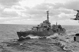 Following Korea, Athabaskan underwent a major refit, re-commissioning on 25 October 1954 as a destroyer escort.[5] On 1 January 1955, Athabaskan was assigned to the Second Canadian Escort Squadron of Pacific Command.[6] In November 1955, the Second Canadian Escort Squadron was among the Canadian units that took part in one of the largest naval exercises since the Second World War off the coast of California.[7] She returned to her training mission which lasted until January 1959. That month, she transferred to the east coast where she became part of the destroyer squadron made up of the Tribal-class destroyers in the Royal Canadian Navy. She spent the next five years on training cruises with occasional North Atlantic Treaty Organization (NATO) exercises. Athabaskan was placed in reserve in 1964 at Halifax.[2]