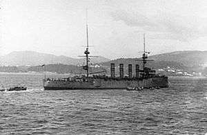 Roxburgh, named to commemorate the Scottish county,[8] was laid down at the Govan shipyard of the London and Glasgow Shipbuilding Company on 13 June 1902.[1] Construction was slowed owing to problems with delivery of her boilers,[9] with the ship being launched on 19 January 1904 and completed on 5 September 1905.[1] She was initially assigned to the 1st Cruiser Squadron of the Channel Fleet together with most of her sister ships and remained with the squadron until beginning a refit at Devonport Royal Dockyard in December 1908. Upon its completion in August 1909, she was assigned to the reserve Third Fleet.[10] In June 1912 the ship was transferred to the 3rd Cruiser Squadron of the Second Fleet. Six months later, she stood by the stranded merchantman SS Ludgate off the coast of Morocco.[11]