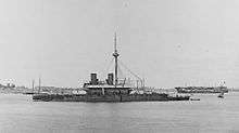 The Devastation-class ships had a complete wrought iron waterline armour belt that was 12 inches thick amidships and tapered to 9 inches (229 mm) outside the armoured citadel towards the ends of the ship. The armour plates were tapered to a thickness of 10–8.5 inches (254–216 mm) at their bottom edges respectively and they extended from the upper deck to 5 feet 9 inches (1.8 m) below the waterline. The armoured citadel protected the bases of the gun turrets, the funnel uptakes and the crew's quarters. The sides of the citadel were 12 inches thick around the bases of the turrets and 10 inches thick elsewhere. The turrets were protected by two 7–6-inch (178–152 mm) plates, separated by a layer of teak with the turret face having the thicker armour.[10] The magazine were protected by a 6-inch forward bulkhead and a 5-inch (127 mm) one aft. The conning tower ranged in thickness from 9 to 6 inches in thickness. The ships had a complete 3-inch (76 mm) upper deck that was reinforced by another 2-inch (51 mm) thick inside the citadel.[2]