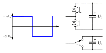 ![]() Operating principle of 2-level converter, single-phase representation |