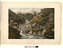 Hafod Uchtryd (English: summer mansion of Uchtryd) is a wooded and landscaped estate, located in Ceredigion, west Wales, in the Ystwyth valley. It is near Devil's Bridge, Cwmystwyth and Pont-rhyd-y-groes off the B4574 road - which is described by the Automobile Association as one of the ten most scenic drives in the world.[1] It was anciently the location of a dwelling on the side of the hill above the river Ystwyth, looking to the east. First used as a hunting lodge for Welsh Chieftains, it became home to landed gentry and nobility, and in the late eighteenth century became a celebrated landscape, under the ownership of Thomas Johnes.[2]