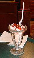 Shelled prawns in a pink sauce based on mayonnaise and tomato, served in a glass.[18] It was the most popular hors d'œuvre in Great Britain from the 1960s to the late 1980s. In North America the sauce is red, essentially ketchup plus horseradish.[18] | ||