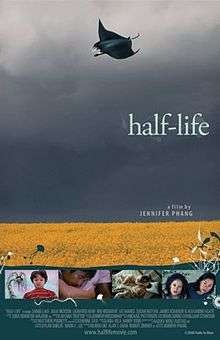 Half-Life is a 2008 independent film directed by Jennifer Phang, starring Sanoe Lake, Julia Nickson-Soul, Leonardo Nam, Ben Redgrave, Lee Marks, James Eckhouse, Susan Ruttan and Alexander Agate. The film premiered in the 2008 Sundance Film Festival and has since been touring the American and international film festivals circuits. It premiered internationally in the Tokyo International Film Festival in competition, and then in Europe at the Mannheim-Heidelberg International Film Festival, also in competition. Half-Life was the opening night film for the International Women's Film Festival in Seoul, Korea. The film made a theatrical debut on December 1, 2009 in selected cities.