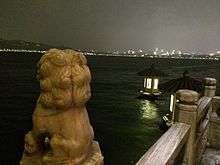 In the Tang dynasty, Bai Juyi was appointed governor of Hangzhou.[13] Already an accomplished and famous poet, his deeds at Hangzhou have led to his being praised as a great governor. He noticed that the farmland nearby depended on the water of West Lake, but due to the negligence of previous governors, the old dyke had collapsed, and the lake so dried out that the local farmers were suffering from severe drought. He ordered the construction of a stronger and taller dyke, with a dam to control the flow of water, thus providing water for irrigation and mitigating the drought problem. The livelihood of local people of Hangzhou improved over the following years. Bai Juyi used his leisure time to enjoy the beauty of West Lake, visiting it almost daily. He also ordered the construction of a causeway connecting Broken Bridge with Solitary Hill to allow walking, instead of requiring a boat. He then had willows and other trees planted along the dyke, making it a beautiful landmark. This causeway was later named "Bai Causeway", in his honor.
