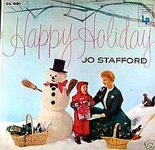 Happy Holiday is a 1955 album of Christmas songs and carols by Jo Stafford, accompanied by her husband Paul Weston and his orchestra. The entire family participated in the creation of this album; young Tim Weston is the small boy on the cover.[2] Stafford is also joined by The Starlighters for vocal background, just as she was after her version of The Chesterfield Supper Club moved to Hollywood.[2][3][4]