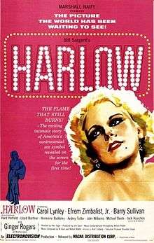 Harlow is a fictionalized drama based on the life of film star Jean Harlow, released in 1965 with Carol Lynley in the title role. It was released shortly before Paramount Pictures' own film on the same subject. This was Ginger Rogers' last film appearance. The film was directed by Alex Segal.[1]