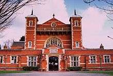 The Elliott Hall was built in 1904 and was the assembly hall to a much larger, but sadly demolished, building of the Royal Commercial Travellers School designed by H O Cresswell. It is named after B. G. Elliott, one time pupil and scholar at the RCT, who was President of the Committee tasked with the funding and building of the hall.[2]