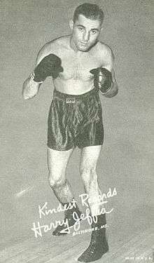 Harry Jeffra (born Ignacius Pasquale Guiffi on November 30, 1914 – September 1988) was an American boxer. Born in Baltimore, Maryland, he became a World Bantamweight and NYSAC World Featherweight boxing champion. Jeffra's career spanned from 1933 to 1950, and his final record showed 93 wins with (27 by KOs), 20 losses, and 7 draws.[1][2] Jeffra was inducted into the World Boxing Hall of Fame in 1998.[2][3] His manager was Max Waxman, and his trainer was Heinie Blaustein.