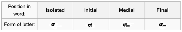| Glyph form: | ھ | ـھ | ـھـ | ھـ |
