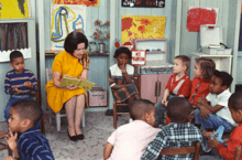 First Lady Lady Bird Johnson visits a Head Start class in 1966