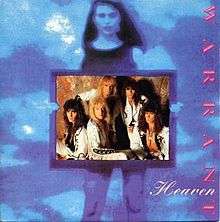 Heaven is a song by American glam metal/hard rock band Warrant. It was released in July 1989 as the second single from Warrant's debut album Dirty Rotten Filthy Stinking Rich. The song was Warrant's most commercially successful single, spending two weeks at number two on the Billboard Hot 100 (kept from the top spot by Milli Vanilli's ‘Girl I'm Gonna Miss You’), and reaching number one in Rolling Stone, and number three on the Mainstream Rock Tracks chart.[2] The track's commercial success has led it to becoming one of the best known songs by the band.