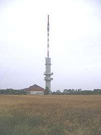 Hegyhátsál TV Tower is a 117 meter tall transmission tower near Hegyhátsál at Hungary at 46°57'21N and 16°39'08E. Hegyhátsál TV tower is a tower is one of the few partially guyed towers as it consists of a concrete tower as basement with a guyed mast on its top. Hegyhátsál TV Tower is not only used for FM- and TV-broadcasting, it carries also instruments for measuring the concentration of carbon dioxide. Therefore, it carries corresponding devices 10, 48, 82 and 115 meters above ground. At the uppermost measuring sites also instruments for measuring wind speed, wind direction, temperature and air humidity are mounted on a 4.4 meter long arm.