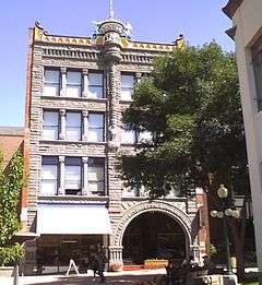 Helena's early commercial district was located along State, Edwards, and Broadway Streets, but fires destroyed much of this area in 1869, 1872, and 1874. Much of what was built afterwards was built in the Western Commercial style, with splendid brickwork and simple lines. The Beaux Arts Parchen Drug Building, Colwell Building, and the Penn-Block Bristol Hotel were French Renaissance. The Denver Block and Sands Brothers Dry Goods were Romanesque Revival.[3] By the mid-1880s at least 18 architectural firms had been established in Helena or called in from back East. Several of these architects were part of or influenced by the Chicago school of architecture. This influence is seen in the Atlas Building, Securities Building, Power Block, and the Lewis and Clark County Courthouse.[5]