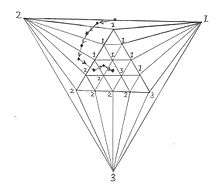 The basic idea of Scarf’s algorithm can be clearly illustrated for and the same logic applies to higher values of We can embed the unit simplex in a larger simplex as shown in Figure 1. The larger simplex is subdivided by linking its three new vertices with the vertices lying on the boundary of the original unit simplex. A proper labelling always leads to