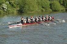 Hertford has a strong rowing history,[1] and this is reflected by the active role that the boat club society plays in the running of the club. Open to anyone with an interest or connection with Hertford rowing, the society is a growing organisation.[5] The highlight of the year is the AGM. This is followed by the annual Society boat race, pitting past rowers against the current 1st VIII's, and then a formal dinner in Hall. Society members also receive the "Blades" magazine.[6] This is published several times a year and keeps society members up to date with the recent fortunes of the club.