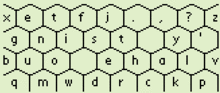 The name ‘HexInput’ is unfortunate: in computing, ‘hex’ tends to mean hexadecimal notation, though it may be argued that a general text input method is named for general users, not just those with computing backgrounds. The use of hexagons is not essential to the idea, though they do maximize the available area per cell and the number of easily reachable neighbors per cell.