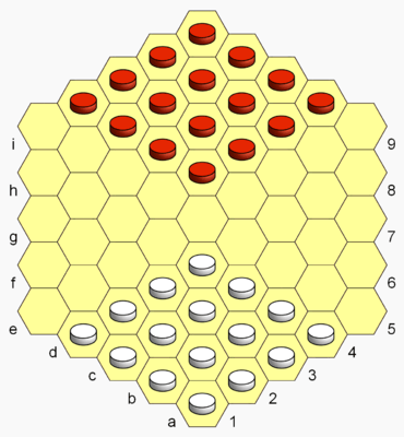 - Each side has nine possible promotion cells on the hex board (versus five on the 10×10 orthogonal board).