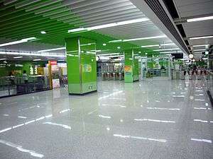 Higher Education Mega Center North Station (Chinese: 大学城北站) is a station of Line 4 of the Guangzhou Metro. It started operations on 26 December 2005. It is located at the underground of the north of Guangzhou Higher Education Mega Center (Chinese: 广州大学城), located on the Xiaoguwei Island (Chinese: 小谷围岛) in Xinzao Town (Chinese: 新造镇), Panyu District.[1]