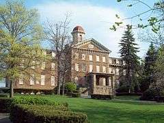 Highland Hall, also known as the Courthouse Annex, is a historic school building located at Hollidaysburg, Blair County, Pennsylvania. It was designed by noted Philadelphia architect Samuel Sloan (1815-1884) and built about 1865. It is a four-story, "T" shaped stone building measuring 150 feet wide and 160 feet deep. It features a mansard roof, characteristic of the Second Empire style. It was originally built to serve as a Presbyterian seminary for both sexes. It became a female academy and officially named Highland Hall in 1911. It continued to be used as a girls' school until 1940. It became a county office building in 1969.[2]