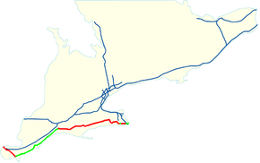Location of Highway 3 in Southern Ontario Current route Former route 400-series highways | ||||