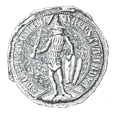 The family of Gediminas, whose members were about to form Lithuania's great native dynasty,[31] took over the rule of the Grand Duchy in 1285 under Butigeidis. Vytenis (r. 1295–1315) and Gediminas (r. 1315–41), after whom the Gediminid dynasty is named, had to deal with constant raids and incursions from the Teutonic orders that were costly to repulse. Vytenis fought them effectively around 1298 and at about the same time was able to ally Lithuania with the German burghers of Riga. For their part, the Prussian Knights instigated a rebellion in Samogitia against the Lithuanian ruler in 1299–1300, followed by twenty incursions there in 1300–15.[27] Gediminas also fought the Teutonic Kights, and besides that made shrewd diplomatic moves by cooperating with the government of Riga in 1322–23 and taking advantage of the conflict between the Knights and Archbishop Friedrich von Pernstein of Riga.[32]